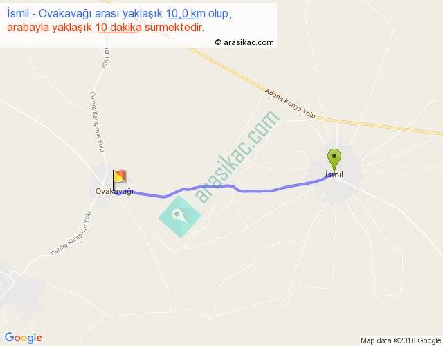 İsmil - Ovakavağı arası yaklaşık olarak 90 km/h ile yukarıda belirtilen sürede olup, iki yerin kuş uçuşu uzaklığı (mesafesi) 10'dir. Yolculuk otobüsle 13 dakika sürmektedir.