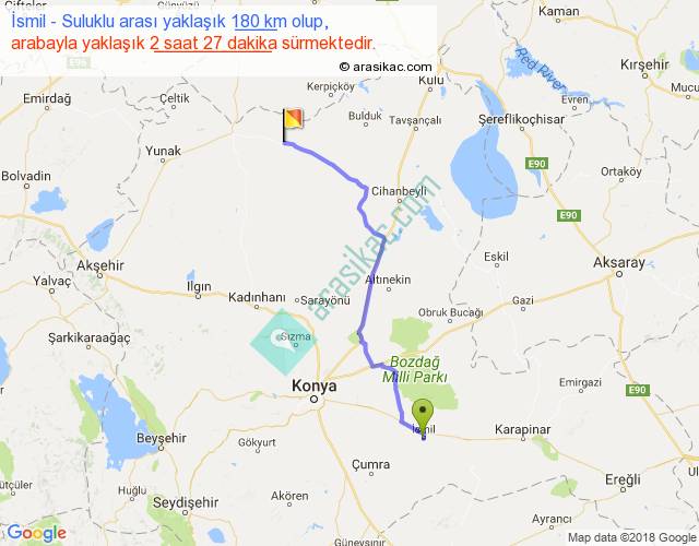 İsmil - Suluklu arası yaklaşık olarak 90 km/h ile yukarıda belirtilen sürede olup, iki yerin kuş uçuşu uzaklığı (mesafesi) 142'dir. Yolculuk otobüsle 3 saat 11 dakika sürmektedir.