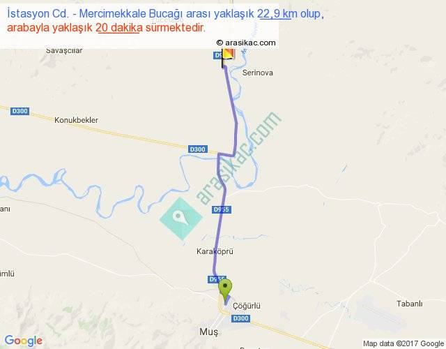 İstasyon Cd. - Mercimekkale Bucağı arası yaklaşık olarak 90 km/h ile yukarıda belirtilen sürede olup, iki yerin kuş uçuşu uzaklığı (mesafesi) 20'dir. Yolculuk otobüsle 26 dakika sürmektedir.