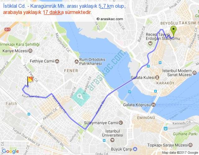 İstiklal Cd. - Karagümrük Mh. arası detaylı bilgi