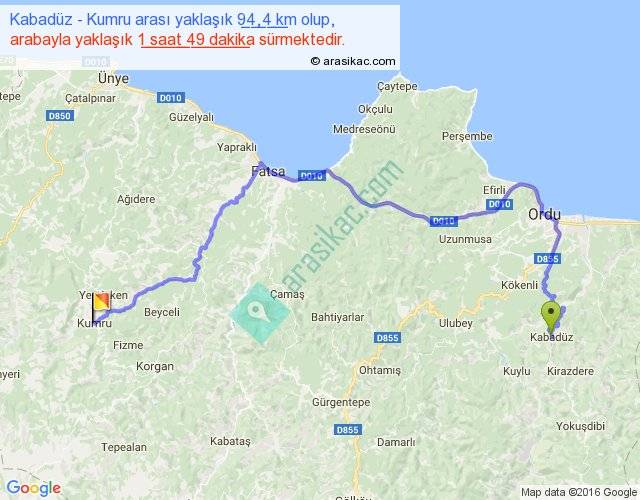 Eğer Kabadüz Kumru arası ne kadar yakar (benzin/mazot) diyorsanız, kilometrede 3 ₺ yakan bir aracınız var ise 282, km'de 4 ₺ yakan bir aracınız var ise 376, km'de 5 ₺ yakan bir aracınız var ise 470 ile bu yolculuğu tamamlayabilirsiniz.