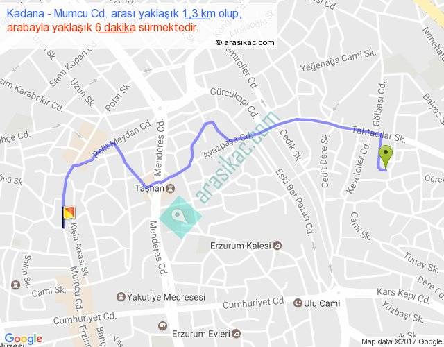 Eğer Kadana Mumcu Cd. arası ne kadar yakar (benzin/mazot) diyorsanız, kilometrede 3 ₺ yakan bir aracınız var ise 3, km'de 4 ₺ yakan bir aracınız var ise 4, km'de 5 ₺ yakan bir aracınız var ise 5 ile bu yolculuğu tamamlayabilirsiniz.