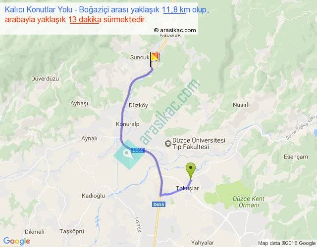 Kalıcı Konutlar Yolu - Boğaziçi arası yaklaşık olarak 90 km/h ile yukarıda belirtilen sürede olup, iki yerin kuş uçuşu uzaklığı (mesafesi) 7'dir. Yolculuk otobüsle 16 dakika sürmektedir.