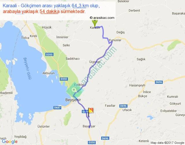 Karaali - Gökçimen arası yaklaşık olarak 90 km/h ile yukarıda belirtilen sürede olup, iki yerin kuş uçuşu uzaklığı (mesafesi) 37'dir. Yolculuk otobüsle 1 saat 10 dakika sürmektedir.