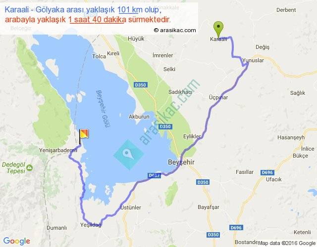 Karaali - Gölyaka arası yaklaşık olarak 90 km/h ile yukarıda belirtilen sürede olup, iki yerin kuş uçuşu uzaklığı (mesafesi) 42'dir. Yolculuk otobüsle 2 saat 10 dakika sürmektedir.