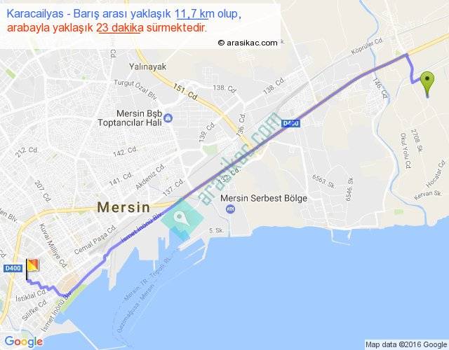 Karacailyas - Barış arası yaklaşık olarak 90 km/h ile yukarıda belirtilen sürede olup, iki yerin kuş uçuşu uzaklığı (mesafesi) 10'dir. Yolculuk otobüsle 29 dakika sürmektedir.