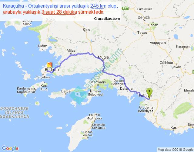 Karaçulha - Ortakentyahşi arası yaklaşık olarak 90 km/h ile yukarıda belirtilen sürede olup, iki yerin kuş uçuşu uzaklığı (mesafesi) 170'dir. Yolculuk otobüsle 4 saat 30 dakika sürmektedir.