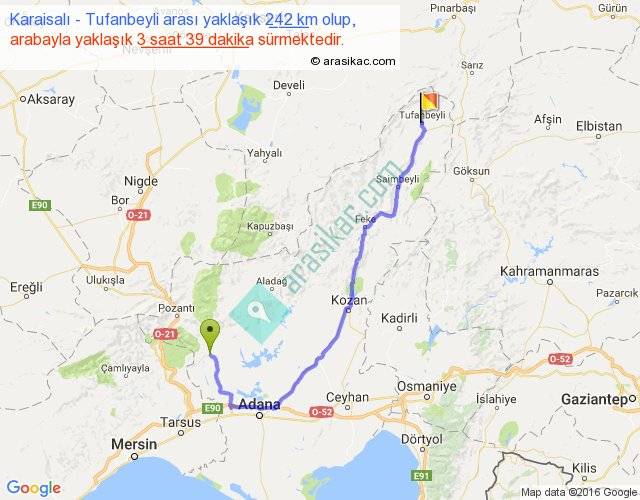 Eğer Karaisalı Tufanbeyli arası ne kadar yakar (benzin/mazot) diyorsanız, kilometrede 3 ₺ yakan bir aracınız var ise 726, km'de 4 ₺ yakan bir aracınız var ise 968, km'de 5 ₺ yakan bir aracınız var ise 1210 ile bu yolculuğu tamamlayabilirsiniz.