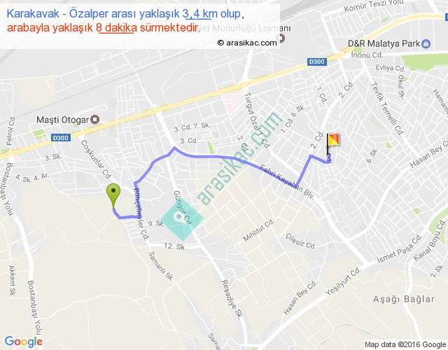 Karakavak - Özalper arası yaklaşık olarak 90 km/h ile yukarıda belirtilen sürede olup, iki yerin kuş uçuşu uzaklığı (mesafesi) 2'dir. Yolculuk otobüsle 10 dakika sürmektedir.