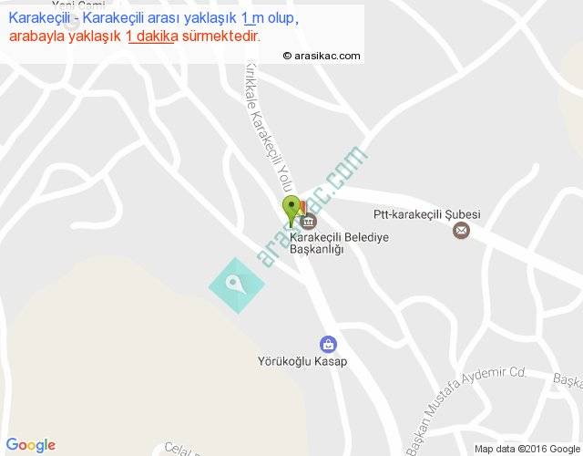 Karakeçili - Karakeçili arası yaklaşık olarak 90 km/h ile yukarıda belirtilen sürede olup, iki yerin kuş uçuşu uzaklığı (mesafesi) NAN'dir. Yolculuk otobüsle 1 dakika sürmektedir.