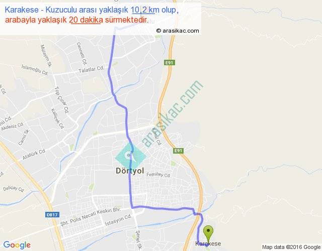 Karakese - Kuzuculu arası yaklaşık olarak 90 km/h ile yukarıda belirtilen sürede olup, iki yerin kuş uçuşu uzaklığı (mesafesi) 7'dir. Yolculuk otobüsle 26 dakika sürmektedir.