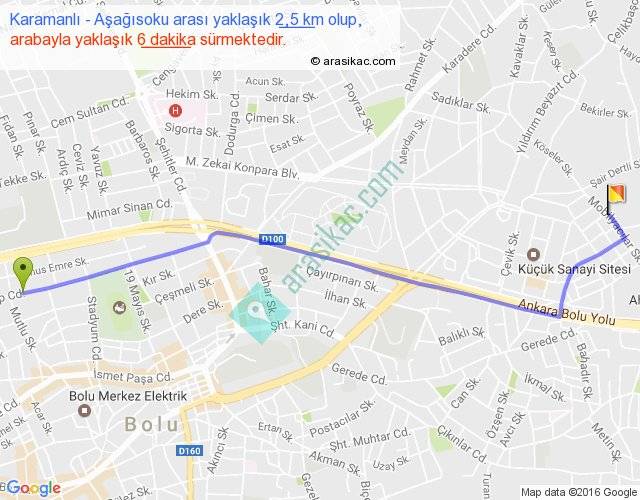 Karamanlı - Aşağısoku arası yaklaşık olarak 90 km/h ile yukarıda belirtilen sürede olup, iki yerin kuş uçuşu uzaklığı (mesafesi) 2'dir. Yolculuk otobüsle 7 dakika sürmektedir.