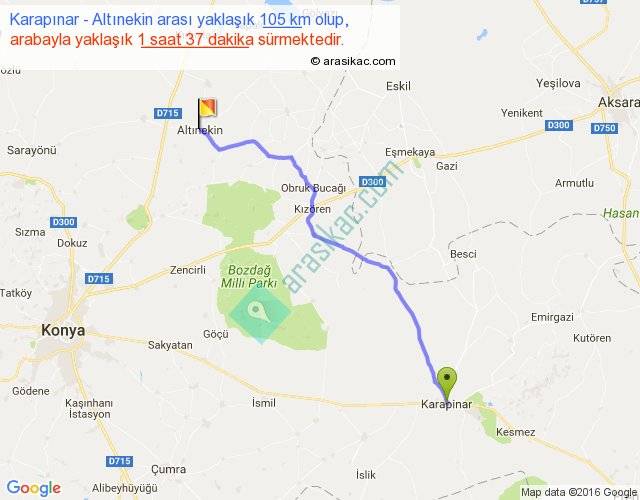 Eğer Karapınar Altınekin arası ne kadar yakar (benzin/mazot) diyorsanız, kilometrede 3 ₺ yakan bir aracınız var ise 315, km'de 4 ₺ yakan bir aracınız var ise 420, km'de 5 ₺ yakan bir aracınız var ise 525 ile bu yolculuğu tamamlayabilirsiniz.