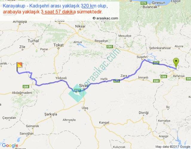 Eğer Karayakup Kadışehri arası ne kadar yakar (benzin/mazot) diyorsanız, kilometrede 3 ₺ yakan bir aracınız var ise 960, km'de 4 ₺ yakan bir aracınız var ise 1280, km'de 5 ₺ yakan bir aracınız var ise 1600 ile bu yolculuğu tamamlayabilirsiniz.