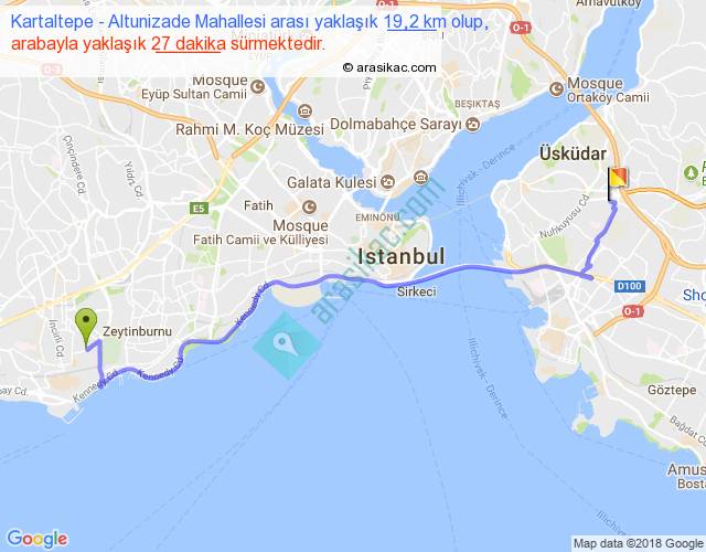 Kartaltepe - Altunizade Mahallesi arası yaklaşık olarak 90 km/h ile yukarıda belirtilen sürede olup, iki yerin kuş uçuşu uzaklığı (mesafesi) 14'dir. Yolculuk otobüsle 35 dakika sürmektedir.