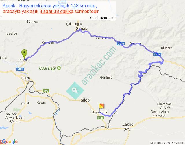 Kasrik - Başverimli arası yaklaşık olarak 90 km/h ile yukarıda belirtilen sürede olup, iki yerin kuş uçuşu uzaklığı (mesafesi) 38'dir. Yolculuk otobüsle 4 saat 43 dakika sürmektedir.
