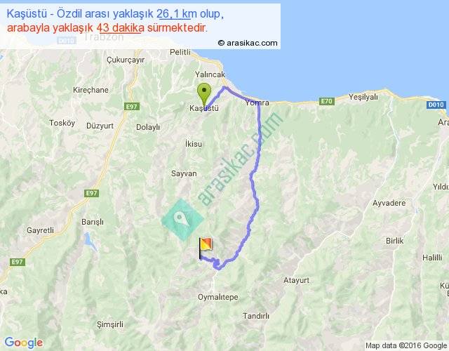 Kaşüstü - Özdil arası yaklaşık olarak 90 km/h ile yukarıda belirtilen sürede olup, iki yerin kuş uçuşu uzaklığı (mesafesi) 12'dir. Yolculuk otobüsle 55 dakika sürmektedir.