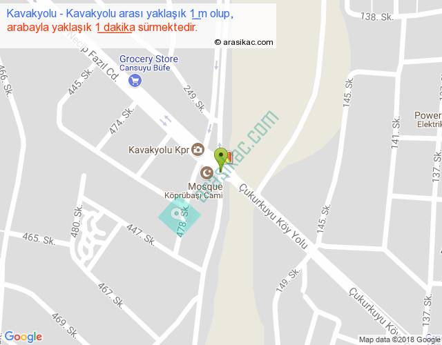 Kavakyolu - Kavakyolu arası yaklaşık olarak 90 km/h ile yukarıda belirtilen sürede olup, iki yerin kuş uçuşu uzaklığı (mesafesi) 0'dir. Yolculuk otobüsle 1 dakika sürmektedir.