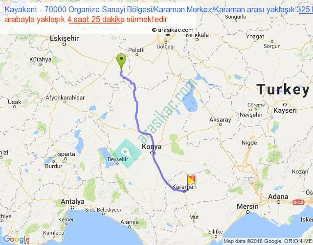 Kayakent - 70000 Organize Sanayi Bölgesi Karaman Merkez Karaman arası detaylı bilgi