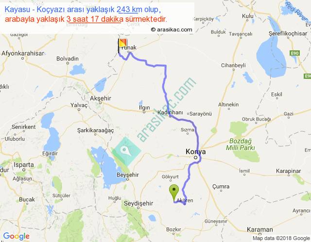 Eğer Kayasu Koçyazı arası ne kadar yakar (benzin/mazot) diyorsanız, kilometrede 3 ₺ yakan bir aracınız var ise 729, km'de 4 ₺ yakan bir aracınız var ise 972, km'de 5 ₺ yakan bir aracınız var ise 1215 ile bu yolculuğu tamamlayabilirsiniz.