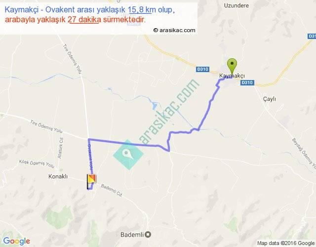 Kaymakçi - Ovakent arası yaklaşık olarak 90 km/h ile yukarıda belirtilen sürede olup, iki yerin kuş uçuşu uzaklığı (mesafesi) 11'dir. Yolculuk otobüsle 35 dakika sürmektedir.