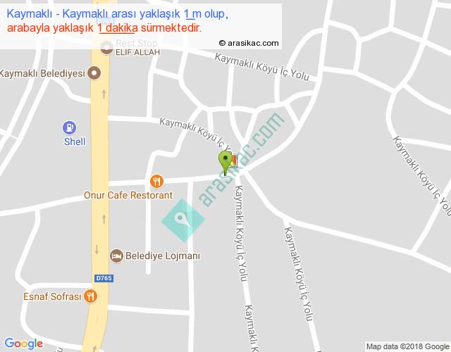 Kaymaklı - Kaymaklı arası yaklaşık olarak 90 km/h ile yukarıda belirtilen sürede olup, iki yerin kuş uçuşu uzaklığı (mesafesi) 0'dir. Yolculuk otobüsle 1 dakika sürmektedir.