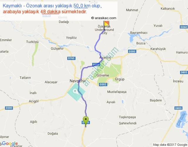 Kaymaklı - Özonak arası yaklaşık olarak 90 km/h ile yukarıda belirtilen sürede olup, iki yerin kuş uçuşu uzaklığı (mesafesi) 40'dir. Yolculuk otobüsle 1 saat 2 dakika sürmektedir.