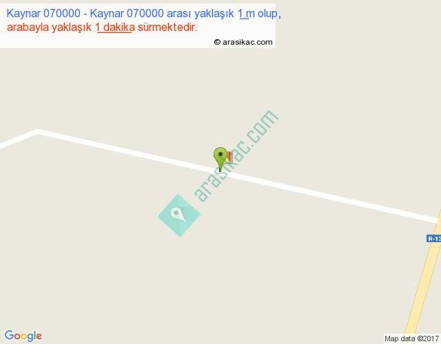 Kaynar 070000 - Kaynar 070000 arası yaklaşık olarak 90 km/h ile yukarıda belirtilen sürede olup, iki yerin kuş uçuşu uzaklığı (mesafesi) 0'dir. Yolculuk otobüsle 1 dakika sürmektedir.