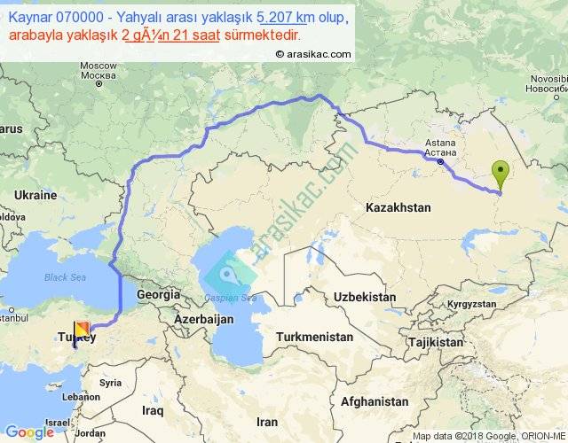 Kaynar 070000 - Yahyalı arası yaklaşık olarak 90 km/h ile yukarıda belirtilen sürede olup, iki yerin kuş uçuşu uzaklığı (mesafesi) 3526'dir. Eğer belirtilen yerler arasında uçak seferi var ise bu süre uçakla 5 saat 25 dakika'ya kadar düşebilir. Yolculuk otobüsle 3 gün 17 saat sürmektedir.