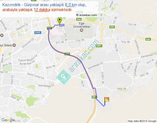 Eğer Kazımdirik Gürpınar arası ne kadar yakar (benzin/mazot) diyorsanız, kilometrede 3 ₺ yakan bir aracınız var ise 24, km'de 4 ₺ yakan bir aracınız var ise 32, km'de 5 ₺ yakan bir aracınız var ise 40 ile bu yolculuğu tamamlayabilirsiniz.