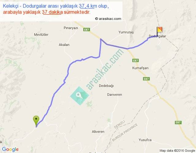 Kelekçi - Dodurgalar arası yaklaşık olarak 90 km/h ile yukarıda belirtilen sürede olup, iki yerin kuş uçuşu uzaklığı (mesafesi) 30'dir. Yolculuk otobüsle 48 dakika sürmektedir.