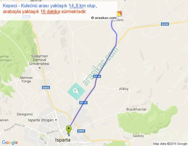 Kepeci - Kuleönü arası yaklaşık olarak 90 km/h ile yukarıda belirtilen sürede olup, iki yerin kuş uçuşu uzaklığı (mesafesi) 13'dir. Yolculuk otobüsle 20 dakika sürmektedir.
