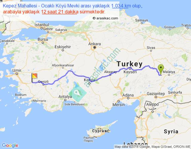 Kepez Mahallesi - Ocaklı Köyü Mevki arası yaklaşık olarak 90 km/h ile yukarıda belirtilen sürede olup, iki yerin kuş uçuşu uzaklığı (mesafesi) 824'dir. Eğer belirtilen yerler arasında uçak seferi var ise bu süre uçakla 1 saat 16 dakika'ya kadar düşebilir. Yolculuk otobüsle 16 saat 3 dakika sürmektedir.