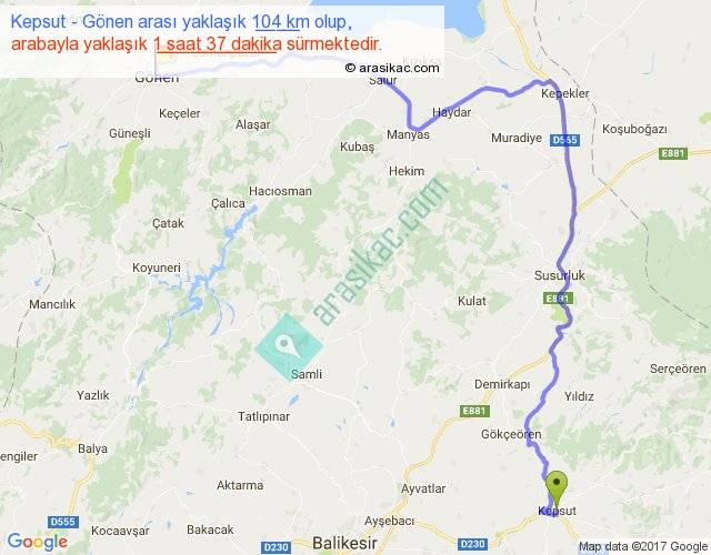 Eğer Kepsut Gönen arası ne kadar yakar (benzin/mazot) diyorsanız, kilometrede 3 ₺ yakan bir aracınız var ise 312, km'de 4 ₺ yakan bir aracınız var ise 416, km'de 5 ₺ yakan bir aracınız var ise 520 ile bu yolculuğu tamamlayabilirsiniz.