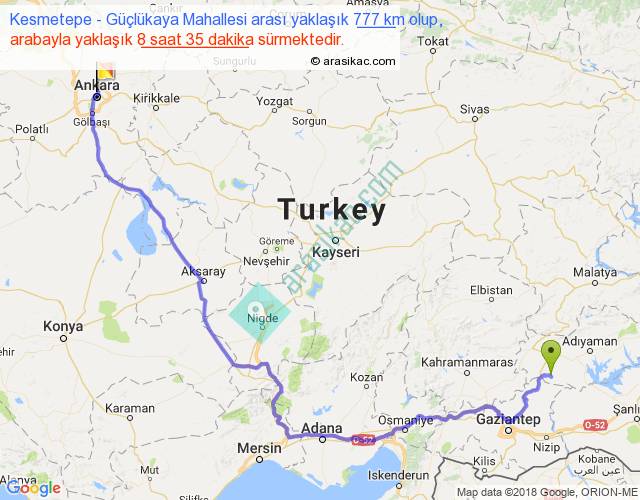 Kesmetepe - Güçlükaya Mahallesi arası yaklaşık olarak 90 km/h ile yukarıda belirtilen sürede olup, iki yerin kuş uçuşu uzaklığı (mesafesi) 507'dir. Eğer belirtilen yerler arasında uçak seferi var ise bu süre uçakla 46 dakika'ya kadar düşebilir. Yolculuk otobüsle 11 saat 9 dakika sürmektedir.