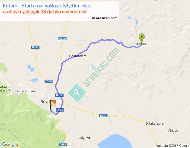 Ketenli - Stad arası yaklaşık olarak 90 km/h ile yukarıda belirtilen sürede olup, iki yerin kuş uçuşu uzaklığı (mesafesi) 23'dir. Yolculuk otobüsle 49 dakika sürmektedir.