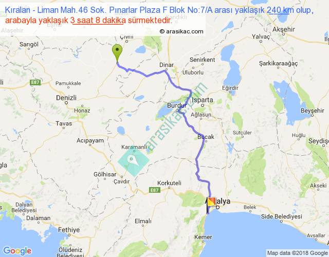 Kıralan - Liman Mah.46 Sok. Pınarlar Plaza F Blok No:7 A arası detaylı bilgi