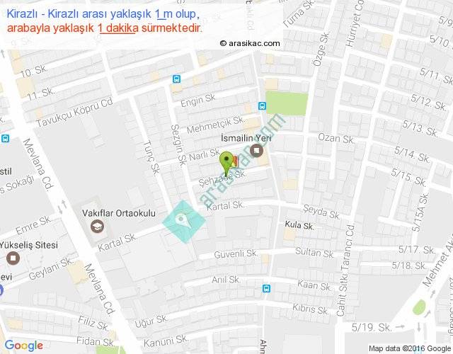 Kirazlı - Kirazlı arası yaklaşık olarak 90 km/h ile yukarıda belirtilen sürede olup, iki yerin kuş uçuşu uzaklığı (mesafesi) 0'dir. Yolculuk otobüsle 1 dakika sürmektedir.