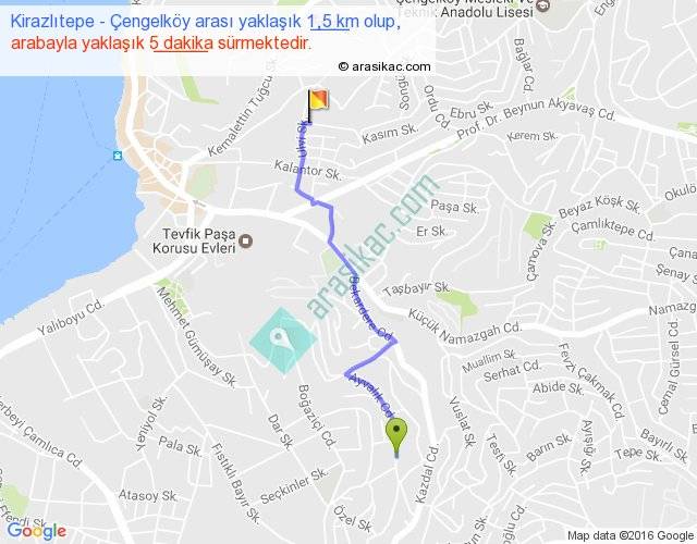 Kirazlıtepe - Çengelköy arası yaklaşık olarak 90 km/h ile yukarıda belirtilen sürede olup, iki yerin kuş uçuşu uzaklığı (mesafesi) 1'dir. Yolculuk otobüsle 6 dakika sürmektedir.