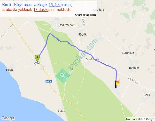 Eğer Kıreli Köşk arası ne kadar yakar (benzin/mazot) diyorsanız, kilometrede 3 ₺ yakan bir aracınız var ise 48, km'de 4 ₺ yakan bir aracınız var ise 64, km'de 5 ₺ yakan bir aracınız var ise 80 ile bu yolculuğu tamamlayabilirsiniz.