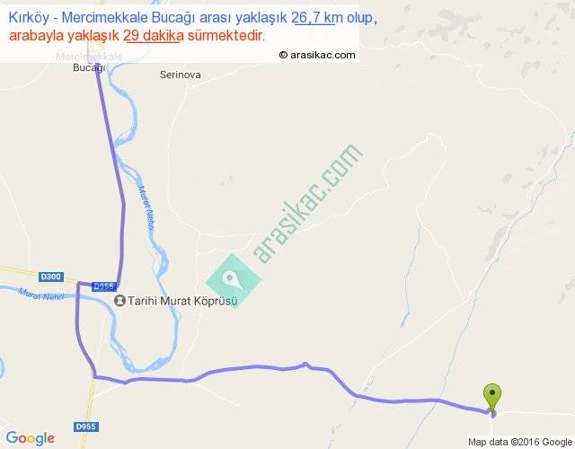 Kırköy - Mercimekkale Bucağı arası yaklaşık olarak 90 km/h ile yukarıda belirtilen sürede olup, iki yerin kuş uçuşu uzaklığı (mesafesi) 18'dir. Yolculuk otobüsle 37 dakika sürmektedir.