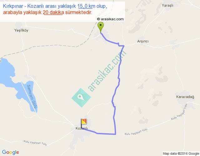 Kırkpınar - Kozanlı arası yaklaşık olarak 90 km/h ile yukarıda belirtilen sürede olup, iki yerin kuş uçuşu uzaklığı (mesafesi) 9'dir. Yolculuk otobüsle 26 dakika sürmektedir.