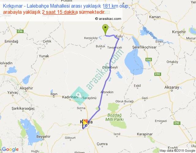 Kırkpınar - Lalebahçe Mahallesi arası yaklaşık olarak 90 km/h ile yukarıda belirtilen sürede olup, iki yerin kuş uçuşu uzaklığı (mesafesi) 149'dir. Yolculuk otobüsle 2 saat 55 dakika sürmektedir.