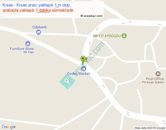 Kısas - Kısas arası yaklaşık olarak 90 km/h ile yukarıda belirtilen sürede olup, iki yerin kuş uçuşu uzaklığı (mesafesi) 0'dir. Yolculuk otobüsle 1 dakika sürmektedir.
