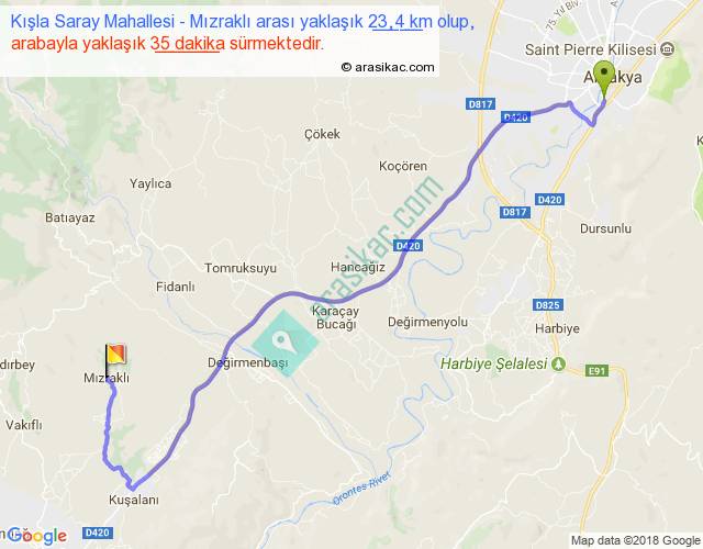 Kışla Saray Mahallesi - Mızraklı arası yaklaşık olarak 90 km/h ile yukarıda belirtilen sürede olup, iki yerin kuş uçuşu uzaklığı (mesafesi) 16'dir. Yolculuk otobüsle 45 dakika sürmektedir.
