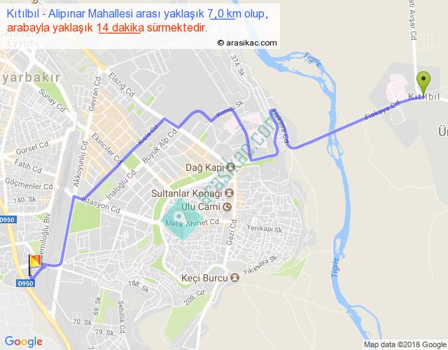 Kıtılbıl - Alipınar Mahallesi arası yaklaşık olarak 90 km/h ile yukarıda belirtilen sürede olup, iki yerin kuş uçuşu uzaklığı (mesafesi) 5'dir. Yolculuk otobüsle 18 dakika sürmektedir.