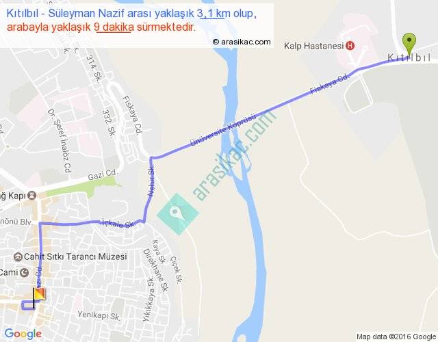 Kıtılbıl - Süleyman Nazif arası yaklaşık olarak 90 km/h ile yukarıda belirtilen sürede olup, iki yerin kuş uçuşu uzaklığı (mesafesi) 2'dir. Yolculuk otobüsle 11 dakika sürmektedir.