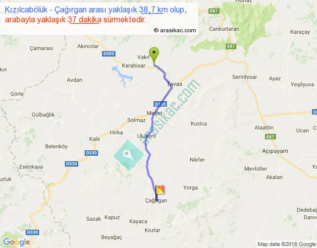 Kızılcabölük - Çağırgan arası yaklaşık olarak 90 km/h ile yukarıda belirtilen sürede olup, iki yerin kuş uçuşu uzaklığı (mesafesi) 33'dir. Yolculuk otobüsle 48 dakika sürmektedir.
