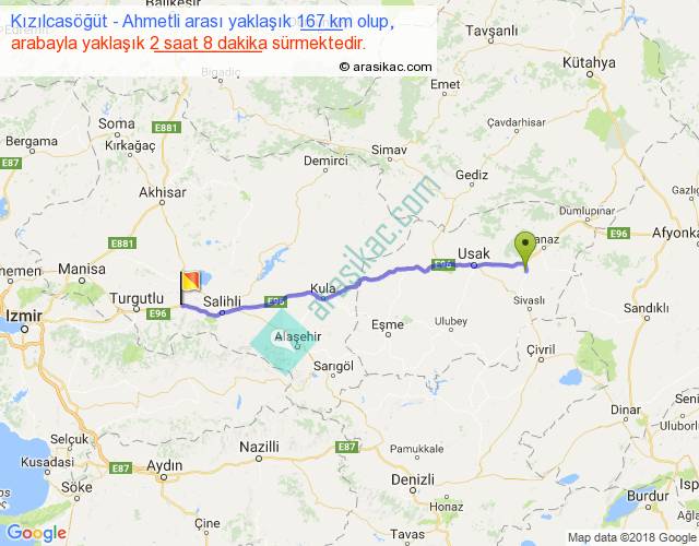Eğer Kızılcasöğüt Ahmetli arası ne kadar yakar (benzin/mazot) diyorsanız, kilometrede 3 ₺ yakan bir aracınız var ise 501, km'de 4 ₺ yakan bir aracınız var ise 668, km'de 5 ₺ yakan bir aracınız var ise 835 ile bu yolculuğu tamamlayabilirsiniz.