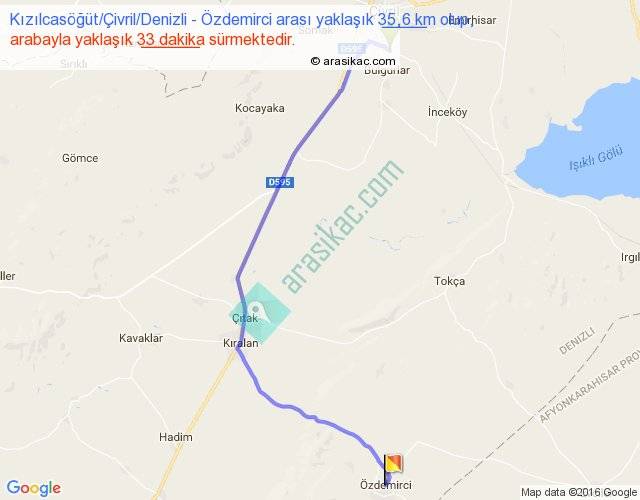 Kızılcasöğüt Çivril Denizli - Özdemirci arası yaklaşık olarak 90 km/h ile yukarıda belirtilen sürede olup, iki yerin kuş uçuşu uzaklığı (mesafesi) 26'dir. Yolculuk otobüsle 42 dakika sürmektedir.